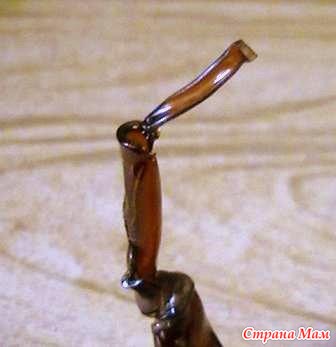 Ствол нужно посадить, я взяла крышку из под кофе, глину для моделирования, посадила в неё первую часть ствола, затем берём уже готовую вторую часть ствола, одной стороной подносим к горящей свечке .