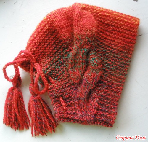 Повязка, вообще-то, задумывалась как шапка, но описания не было, я вязала ее по фоткам. Не угадала с толщиной ниток и она получилась маленькой