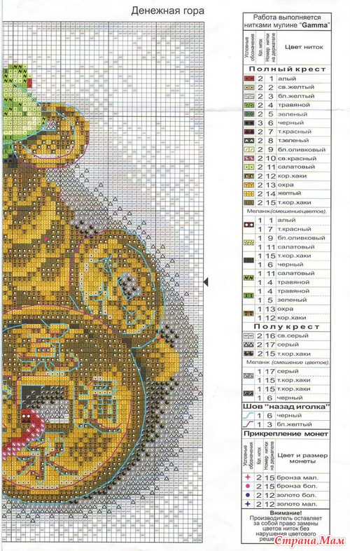 Экономить на денежной жабе не стоит. Она должна выглядеть дорого и шикарно, все таки она — символ вашего богатства. В вышивку монет можно добавить золотую нить (смотрится очень эффектно), а при оформлении в багет использовать зеленый, фиолетовый или золотистый цвет. Монетки должны быть именно китайские, их пришивают иероглифами вверх красной или золотой нитью.