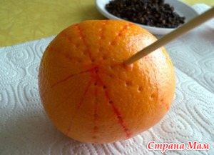 Для изготовления потребуются апельсины или лимоны, острый нож или скальпель, салфетка, фломастер, зубочистка и немолотая гвоздика. Все остальное — полет фантазии...