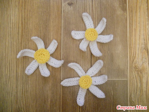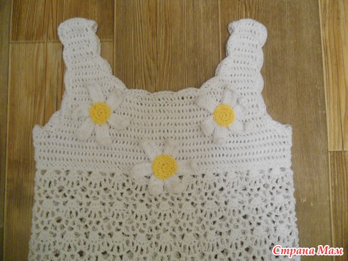 9. Вяжем любые цветочки. У меня ромашки. Вот здесь можно посмотреть другой вариант отделки платья https://www.stranamam.ru/post/2123281/