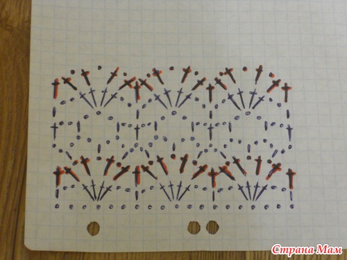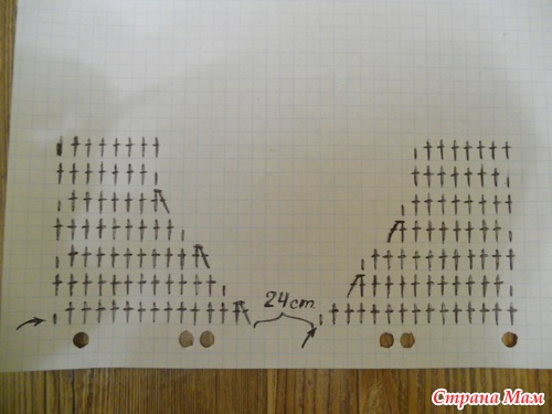 Пропускаем 24 столбика и с 25-го вяжем по второй части предыдущей схемы