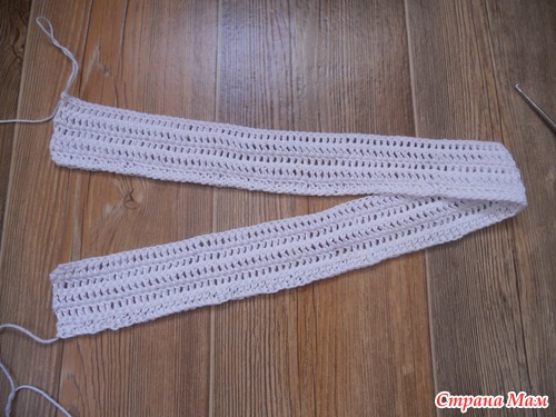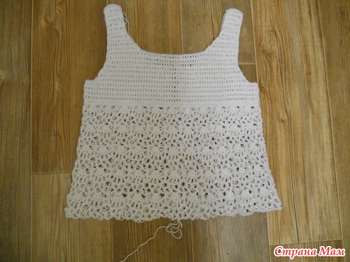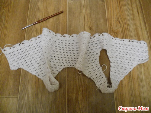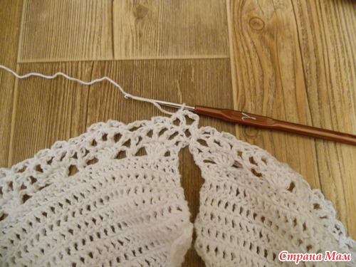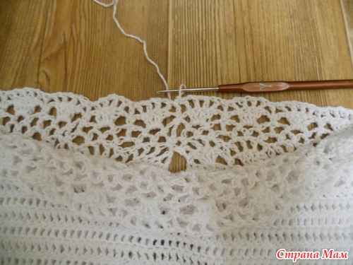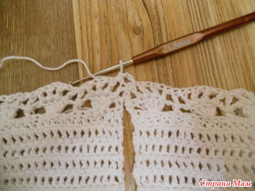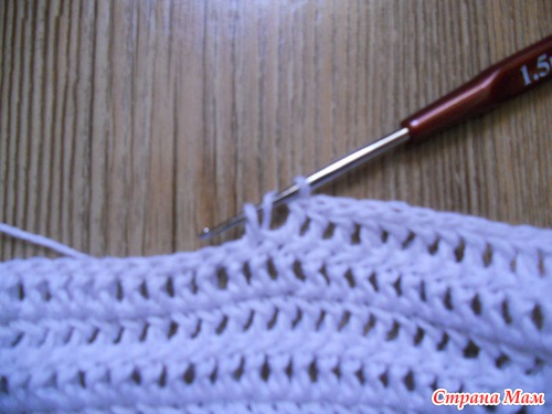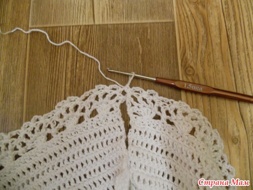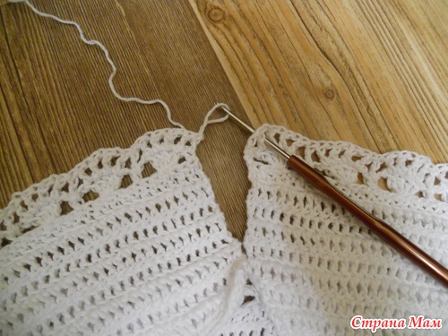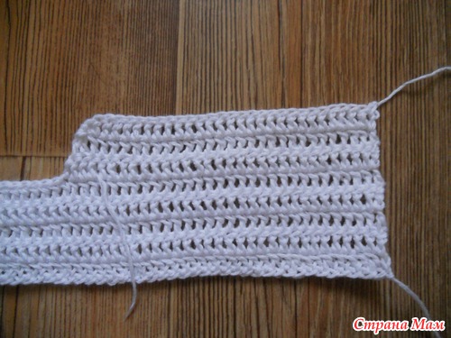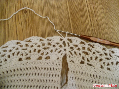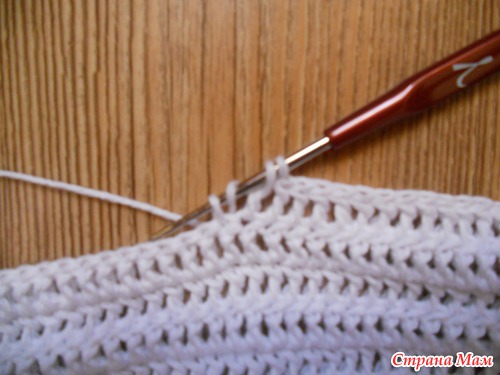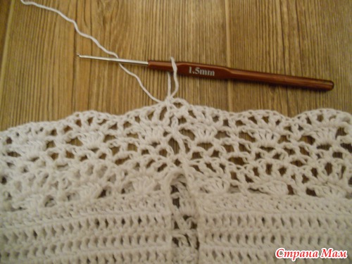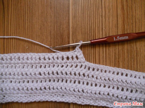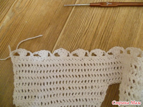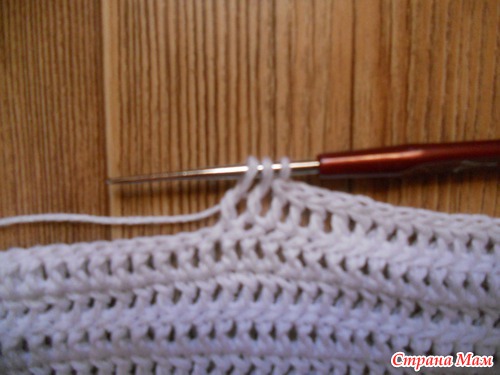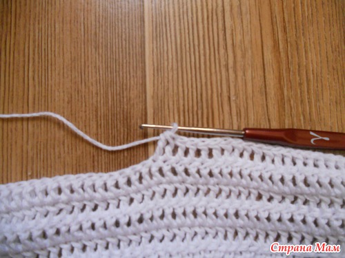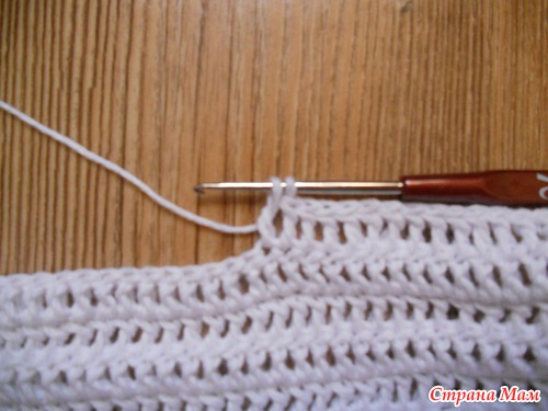 8. Обвязываем проймы и горловину, начиная снизу: СБН, 5 ССН, СБН, 5 ССН...