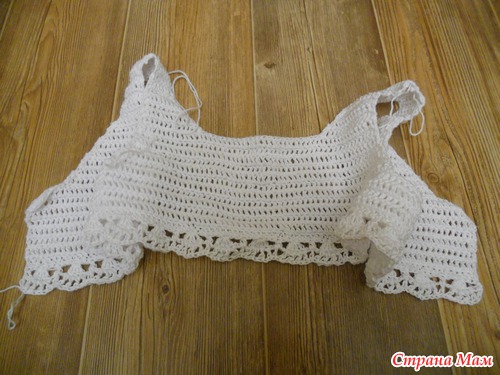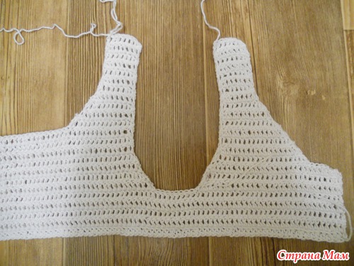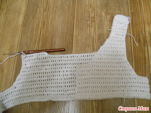 Бретельки переда и спинки связываем вместе столбиками без накида