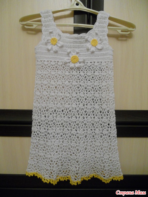 9. Вяжем любые цветочки. У меня ромашки. Вот здесь можно посмотреть другой вариант отделки платья https://www.stranamam.ru/post/2123281/