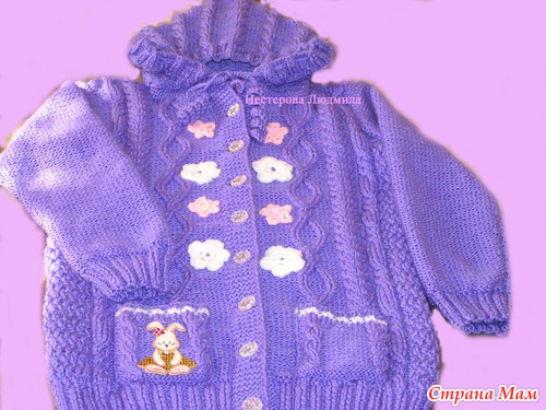 Тэги: жакет с капюшоном, кофта спицами, спицами для девочки