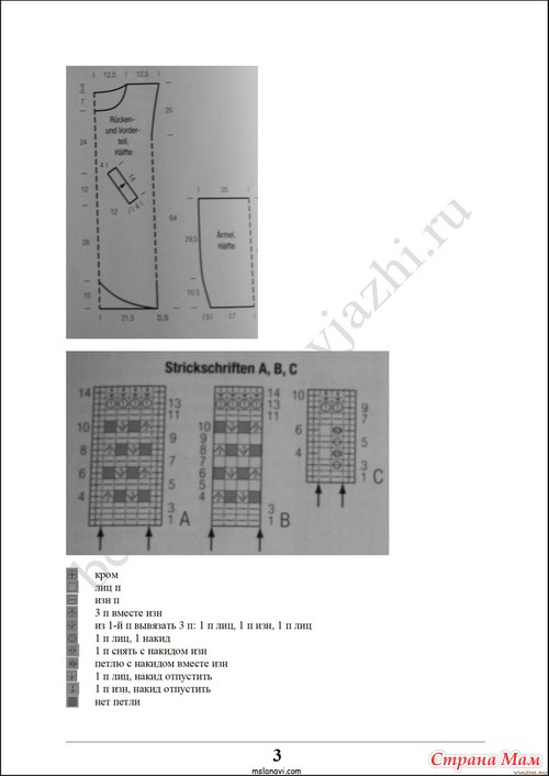 2 ряд. – петли провязывать по рисунку. 3 р. – 1 лиц., 1 изн., *1 лиц., 1 изн., 1 лиц., перенести провязанные п. на левую спицу, обвить петли рабочей нитью 2 раза, перенести петли на правую спицу, 1 изн.*, повт. от * до * до конца ряда.