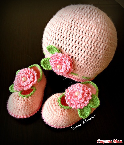 Тэги: головные уборы, девочкам, крючком, пинетки крючком, Шапочка крючком, вязание для детей