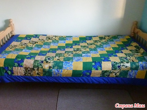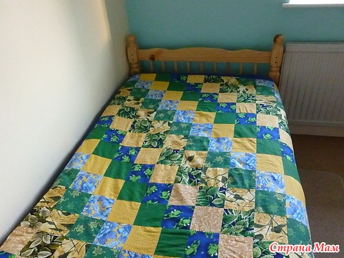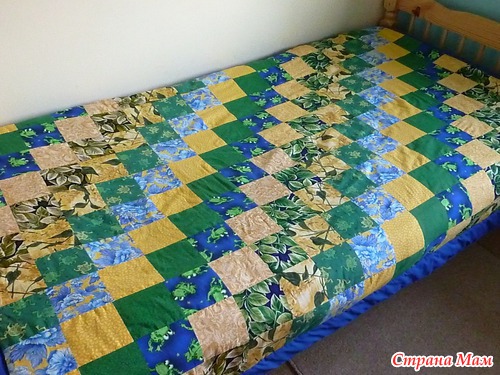 Первое получилось чуть-чуть коротковато, т. к. ткани купила в обрез и при сшивании припуски на швы съели часть ткани, да и квадратики я нарезала маленькие - 10х10 см. Очень долго сидела с ними.