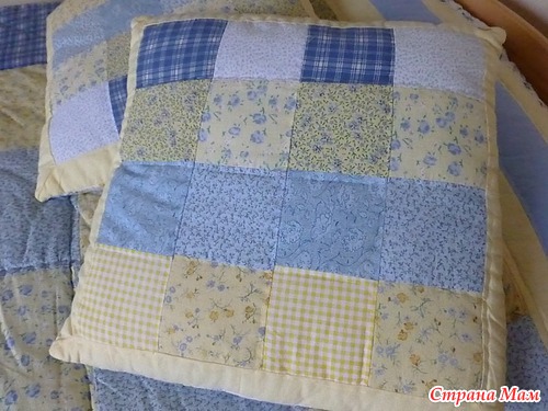 Учитывая этот просчет для второго ткани купила заведомо больше и с размером квадратов размахнулась, осталось даже на 2 маленькие подушечки