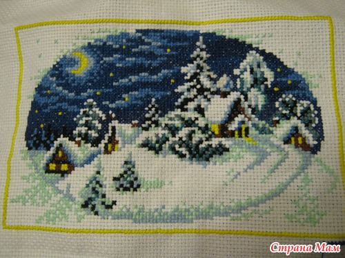 Тэги: Вышивка крестиком, схема, деревня, зимняя ночь