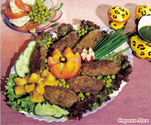 Мякоть баранины пропускают через мясорубку. В фарш добавляют сырое яйцо, черный перец. Все тщательно перемешивают. Для начинки берут отваренный рис, мелко рубят с зеленым луком, крапивой. Добавляют соль, чабрец молотый, сливочное масло. Все перемешивают. Из мясного фарша делают лепешки, на них кладут начинку, заворачивают. Котлеты обжаривают на сковороде с топленым маслом, перекладывают в кастрюлю. Добавляют мясной бульон, ложку томата и нарезанный кольцами свежий помидор. Кастрюлю ставят на слабый огонь на 10 мин., накрывают крышкой. Котлеты подают со сметаной. Гарнир – рис отварной или картофель жареный.