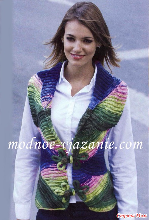 Жилет связан спицами.