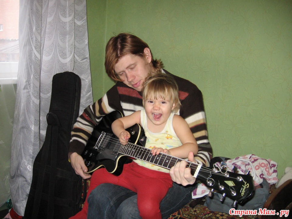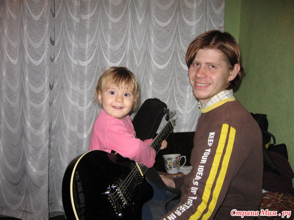 а с другой очень интересно. папу мы практически не видем, он то на репетиция, то на концертах, то сессию сдает или к ней готовится ( он у нас в консерватории учится). Но как приятно ходить на его концерты, смотреть и думать - а это МОЙ муж. Он очень любит заниматься с ребенком музыкой играет с ней на пианино или гитаре разные песенки. Играет он у нас на гитаре. Играет джаз. Конечно постоянно от джаза устаешь и дома все время ученики и музыканты, но нашему папе это все очень нравится и мы готовы его во всем поддерживать и помогать. Вот такой наш папа.