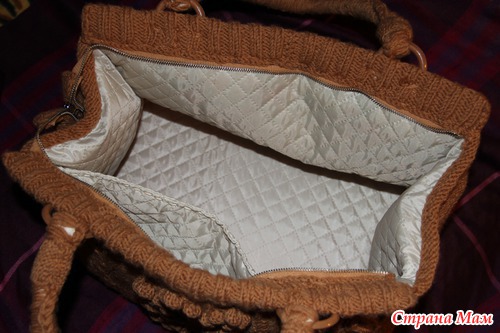 Для каркаса сумки использована плотная пластиковая клеёнка, подклад - стёганый синтепон.