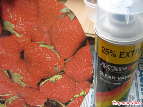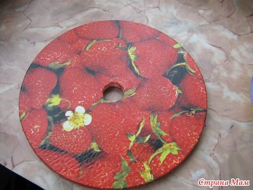 подставка будет клубничная, вырезаем из салфетки.