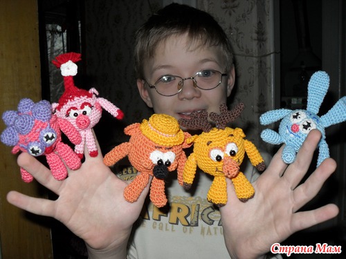 Связано на заказ для четырехлетней девочки. Пользовалась МК Светланы Юрковой http://www.skazkidoma.ru/forum/13 но многие детали в оформлении мордочек добавила от себя. Старалась связать как можно более похожих на мультяшных. Оцените что у меня получилось. Заказчице уже передала, жду отзывов от ее дочки.