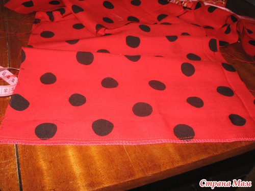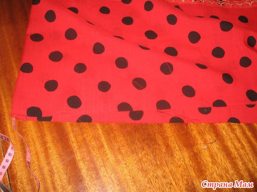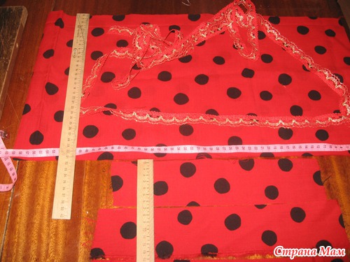 это то что у меня было.. а было у меня тканюхи примерно 35 см..*я ее потом просто подравняла по срезам*.. и шириной 140 см.. с боку отрезала три полосы шириной 7 см. для пояса.. еще был отрез кружева.. купленый по случаю...
