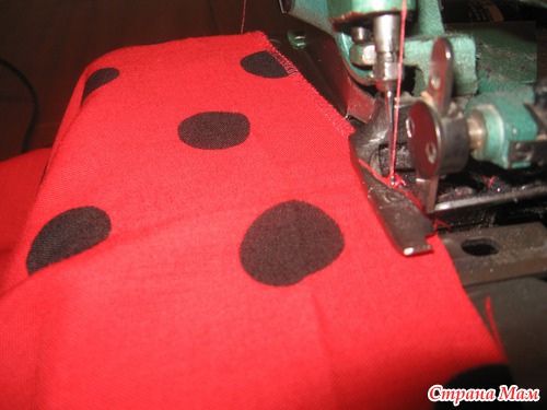 стачиваем боковой шов.. он у нас один по причине скудности материала... и обметываем его.. получаем большое такое кольцо.. это и есть наша юбка))) полуфабрикатом..