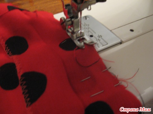 далее.. отмечем вторую боковую линию иголочкой.. просто складывая полотнище пополам.. а также линии середины переда и спинки.*на снимке отмеченно иголочками*.. тоже самое делаем на на поясе...