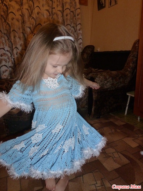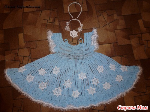 ) решила платье уже связанное давненько - дополнить снежинками, обвязать "Травкой", дополнить вязанным колье и ободком для волос - и вот ИТОГ!!