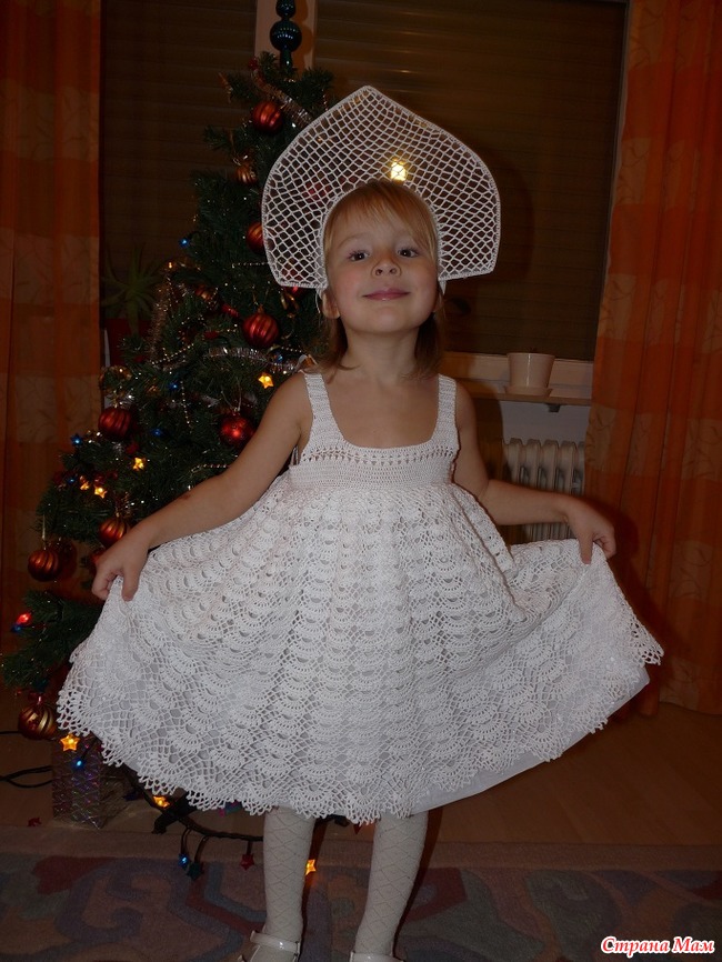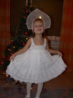 С короной вообще отдельная история. Если честно, то она вообще еще не готова, просто так одели дома для фото. Никак не пойму как связать сзади, чтобы хорошо держалась. Поэтому и отложила пока, не стала впереди оформлять, но доча решила примерить.