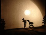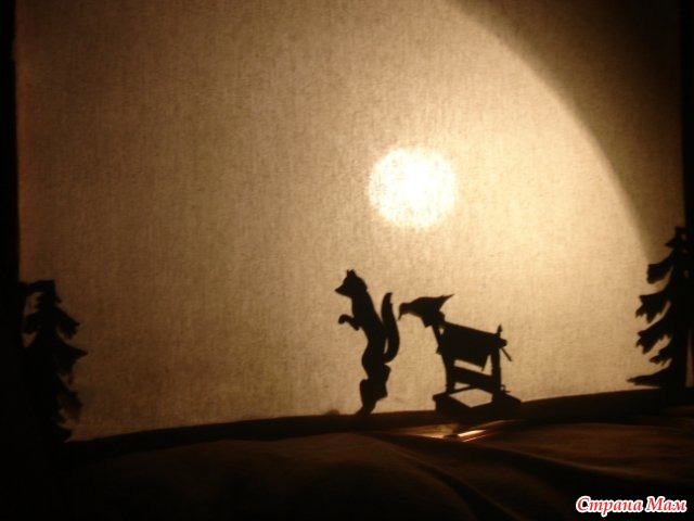 Тут все просто, выбираешь сказку, готовишь фигуры и вперед свет выключить и подготовить сцену.... У нас была сказка КОЛОБОК! Вот такой театр получился ...
