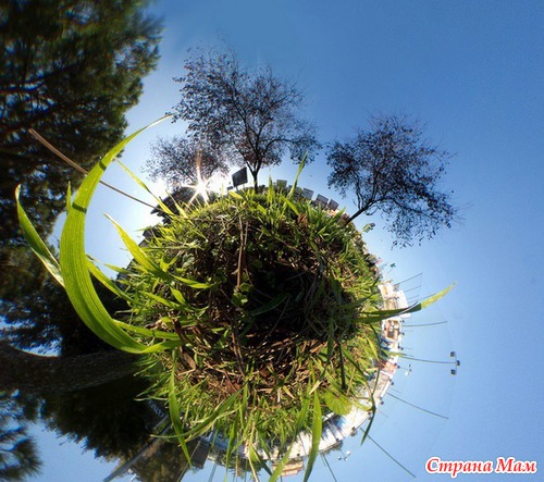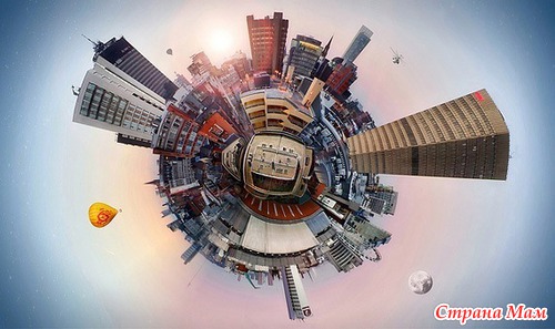 Стереографическая проекция используется, чтобы отображать сферические панорамы. Это приводит к интересным результатам: часть, близкая к точке противоположной центру проекции сильно растягивается, создавая иллюзию маленьких планет, которые можно сделать практически из чего угодно.