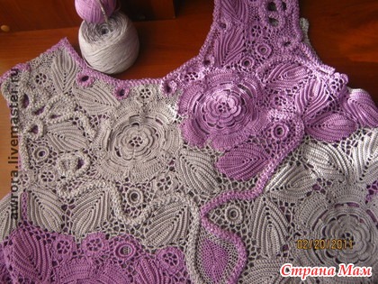 Мирослава творит замечательные вещи- оня вяжет крючком удивительные ирландские кружева! Я увидела ее работы более полутора лет наза на Ярмарке мастеров, влюбилась в одно из ее творений и... мечтала.. мчтала о таком платье год! потом списалась с автором, она написала что заказы не берет новые, вяжет принятые, я стала ждать! и вот через почти 2 месяца пришло мое платье мечты! я как раз собиралась на свадьбу к близким людям и очень хотела, чтоб платье успело!