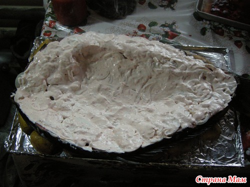 Обязательно следим, чтобы соус был равномерно распределен по всей рыбе.