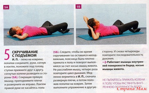 К счастью, на каком-то сайте я нашла еще упражнения для мышц живота и бедер. Думаю, это будет хорошим продолжением еще недели на три.