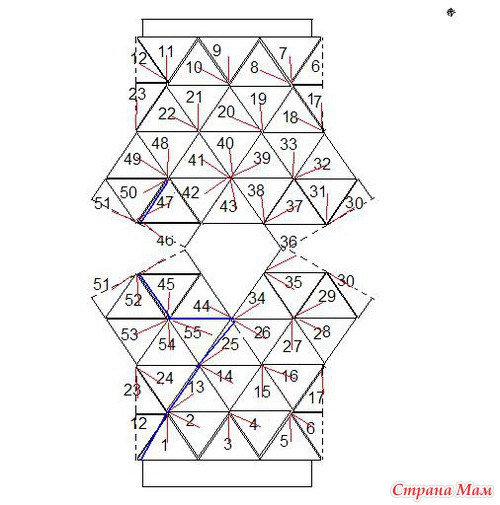 спасайте, весь мозг себе уже взорвала как эти треугольники вязать? конкретно интересует последний ряд-где его начинать и как закончить, чтобы получился ровный рисунок?