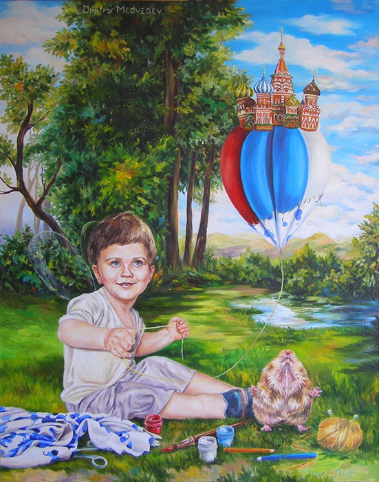 В зарубежных СМИ серия картин о знаменитостях в детстве известна под коротким названием Famous Elves, в оригинале же она называется "Когда эльфы не спят". Взяв за основу детские фотографии известных людей, Николина Бакуменко попыталась не просто перенести на холст черты лица, но и заглянуть в самую суть, проследить характер персонажа, чтобы поместить его в ту среду, в которой он бы чувствовал себя естественно, непринужденно, выглядел органично и - узнаваемо. К примеру, президента Франции Николя Саркози художница изобразила эльфом, который сидит на верхушке Собора Парижской Богоматери, с высоты осматривая окрестности. За спиной - Эйфелева башня, слева - одна из знаменитых горгулий Собора, на шее - ленточка цветов французского флага. А в руках у очаровательного эльфа, который известен нам как президент России Дмитрий Медведев, - воздушный шар, увенчанный миниатюрой Кремля и окрашенный в цвета национального флага.