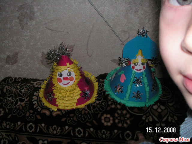 Вот таких симпатичных Деда Мороза и Снегурочку, мы с моей дочерью делали в прошлом году на Ёлку в садик.