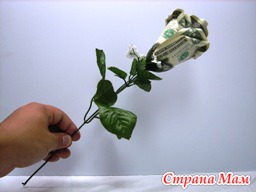 Эта техника составления денежных цветов позволяет сохранить купюры в достаточно гладком состоянии.