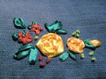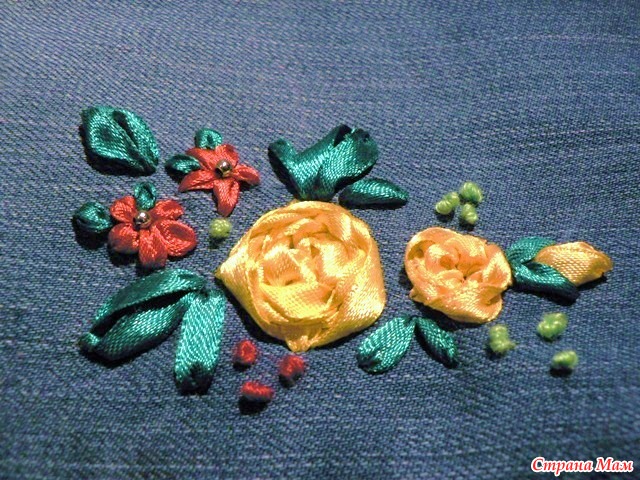 Пока помогала девочкам с вышивкой лентами, зародилась идея чехла для планшетника. Взяла остатки лент, старые джинсы и немного вдохновения. И появился в доме небольшой букетик.