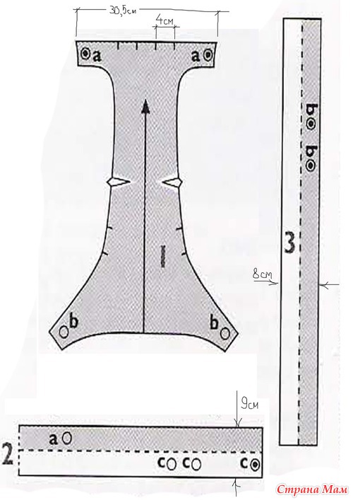 Размеры проставлены для нужного масштаба(совпадают с выкройкой в нат. величину).