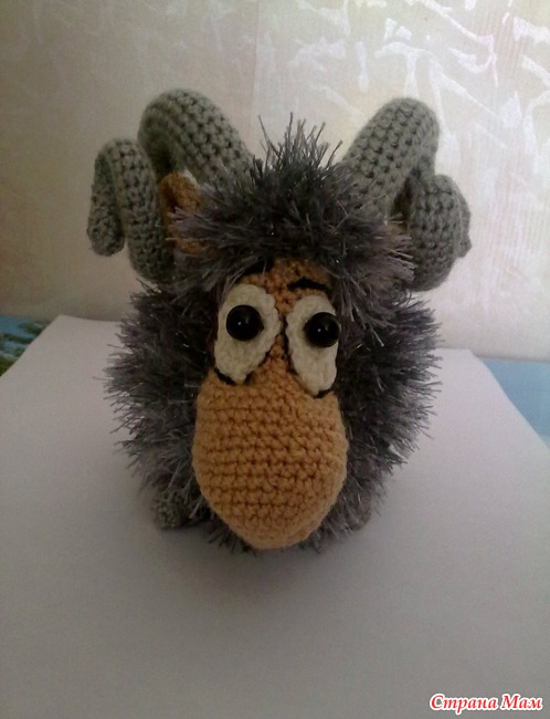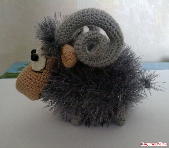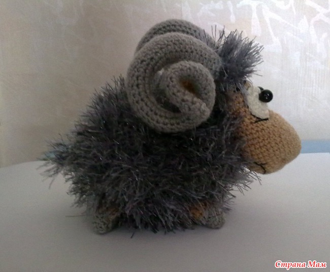 Это мой первый опыт в вязании. Увидев этого овна у Марины Борисовой и загорелась желанием иметь такого, но вязать я не умела совсем, пришлось учиться, большое спасибо девочкам которые мне помогали, можно сказать учили вязать с нуля ИрискаИрина, mozgolomka