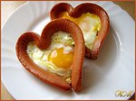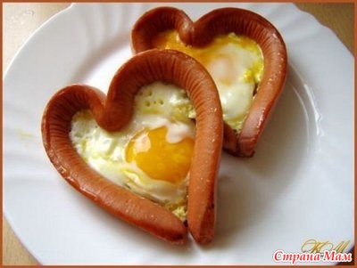 пробовала делать сердечки - но у нас продают слишком короткие сосиски, поэтому получилось менее красиво, но съедобно и весело, это отличный завтрак, особенно морозной зимой - муж одобрил