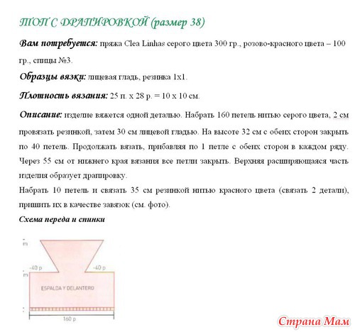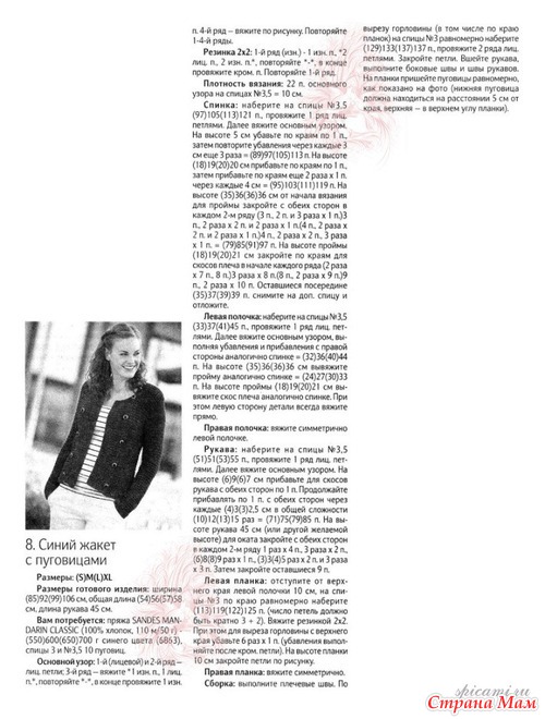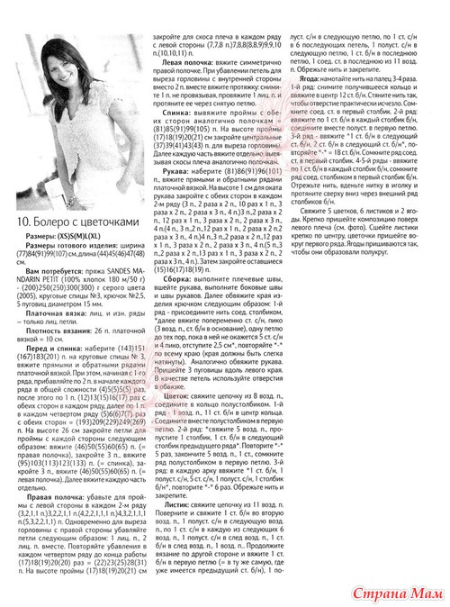 Плотность вязания, лицевая гладь: 22 п. и 20 р. = 10 х 10см.