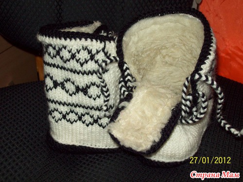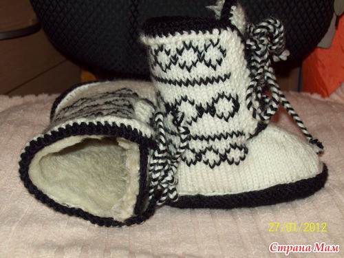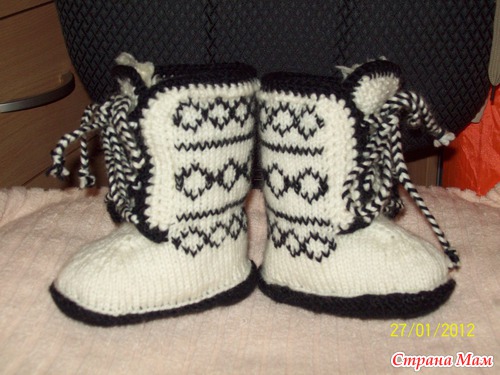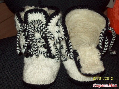 У меня 23 января родился племянник, захотелось ему сделать подарок, а так как зима, то решила связать вот такие угги, и утеплить их мехом. В недрах интернета нашла описание угг, вязала практически по описанию, но что-то и добавила от себя. Вот что у меня получилось.