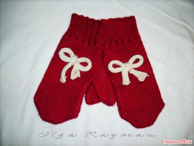 Варежки с пальчиком-клином для девочки 2-3 лет, связанны на однофонтурной машине Нева5.