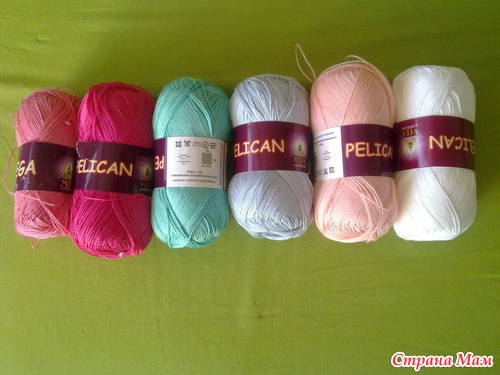 Надо брать мерсеризованный хлопок, я вязала из пеликана, так как я вязала очень плотно и на годовалую девочку у меня ушло меньше 1 моточка 50 г, можно еще попробовать Сосо, виолет - они потолще и на худой конец - ирис