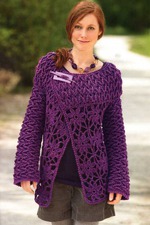Вам потребуется: 600 г фиолетовой пряжи Clou (75% овечьей шерсти, 25% полиакрила, 85 м/50 г): крючки № 5 и № 6: декоративная застёжка.