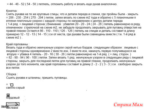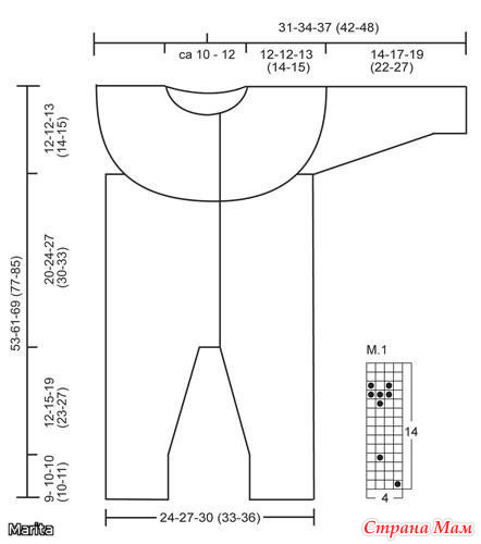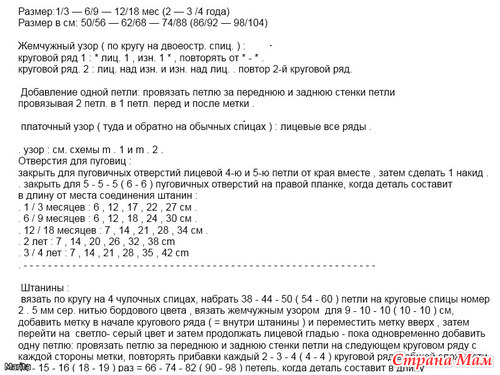 Сделала перевод комбинезона от DROPS, указаны 4 размера, вяжется спицами.