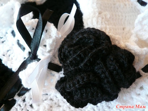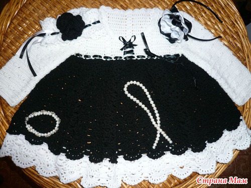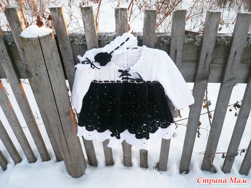 Хотела поучаствовать тут в конкурсе, но не поняла, что сперва, видимо, нужно записываться. Ну да ладно на продажу отложу. Никак не могла найти нужную пряжу. В итоге нашла акрил из двойной ниточки, но на мое "счастье" был только один черный моток. Не помогло даже заглядывание продавщице в глаза и просьбы найти хотя бы начатый второй моток. Решила, что лучше один, чем совсем ничего, авось хватит. Естесна не хватило, ведь в процессе вязки страх совсем теряешь и я замахнулась на широкий подол. Пришлось добавлять белую оборку.