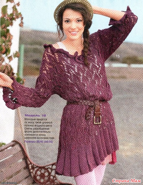 Тэги: спицами, туника, длинный пуловер, волан