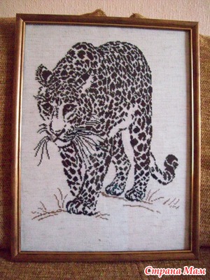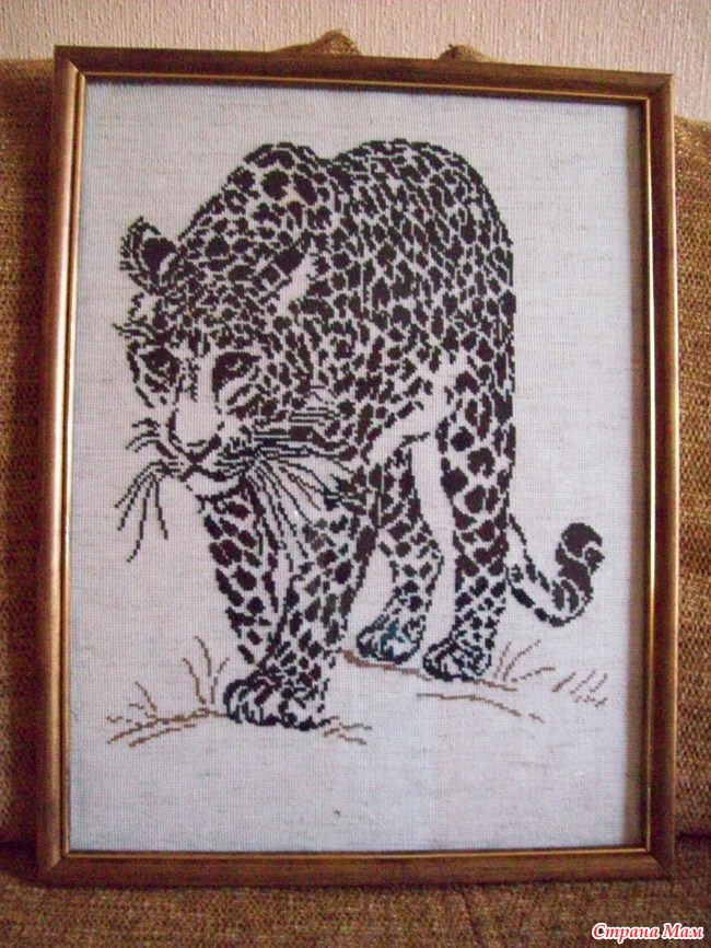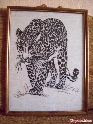 эх, а у меня только морда пока вышла. В глазах от пятен стало рябить, и сын тут пристал "Выший Валерку". Пока отложила, но я видела, честно видела, как мама на леопарда хищно облизывается. Наверно в тайне уже место нашла, куда повесить