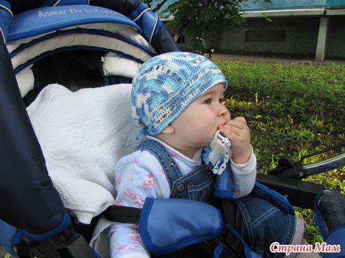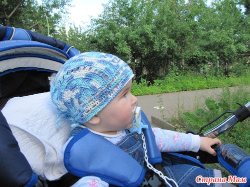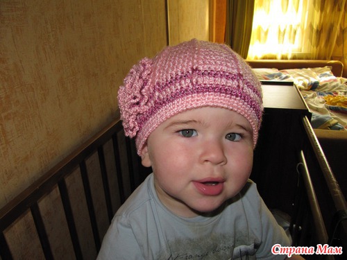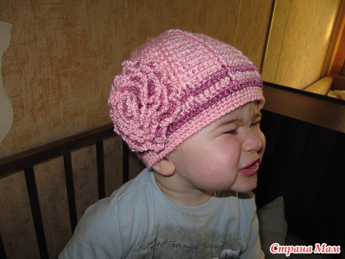 Шапочка-пирожок по МК Гульнары. Вязала для дочери подруги, позирует и примеряет мой сынок