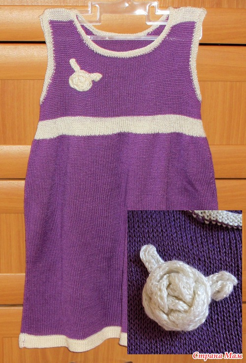 пока с ней разбиралась, вот такое связалось платьице с цветочком, цветочек тоже на машине вязала